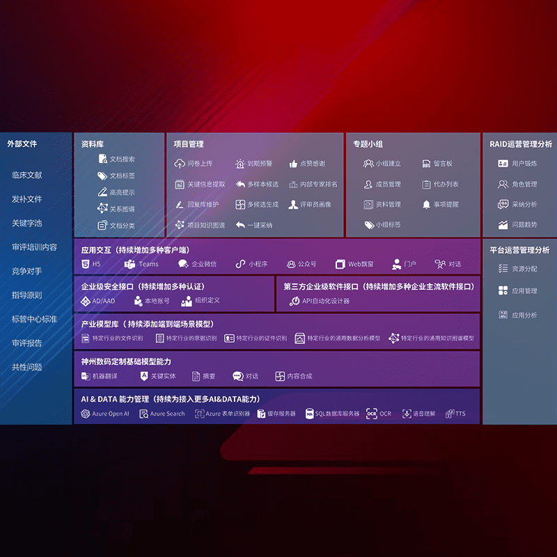 医疗器械产品上市前,,,要熟悉严格与繁复评审标准,,,整理分析监管机构指导文件中的海量信息。。。企业急需一个智能化解决方案,,,,提升知识管理效率,,,,提高评审通过率,,,,以提升其市场竞争力。。。。
